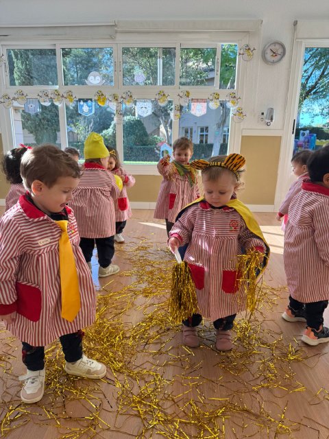 Las familias han participado trayendo objetos de color amarillo desde casa, lo que ha permitido crear un espacio lleno de estímulos cercanos y significativos para el alumnado. Manipular, observar y compartir estos materiales favorece la atención, el lenguaje y la curiosidad, siempre desde una propuesta lúdica y adaptada a su etapa de desarrollo.
