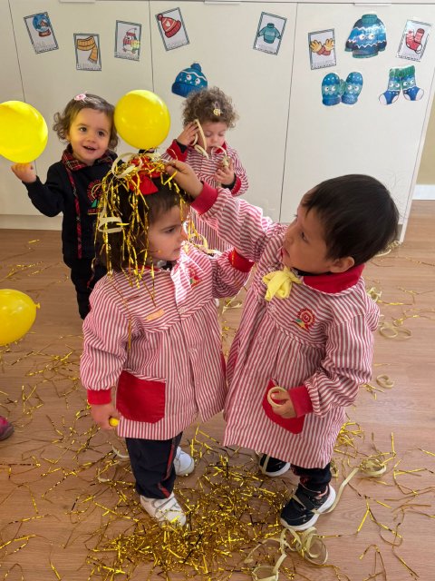 En Verde 1 hemos celebrado la fiesta del amarillo, una actividad pensada para iniciar a los niños y niñas en el reconocimiento de los colores a través del juego y la experimentación.
