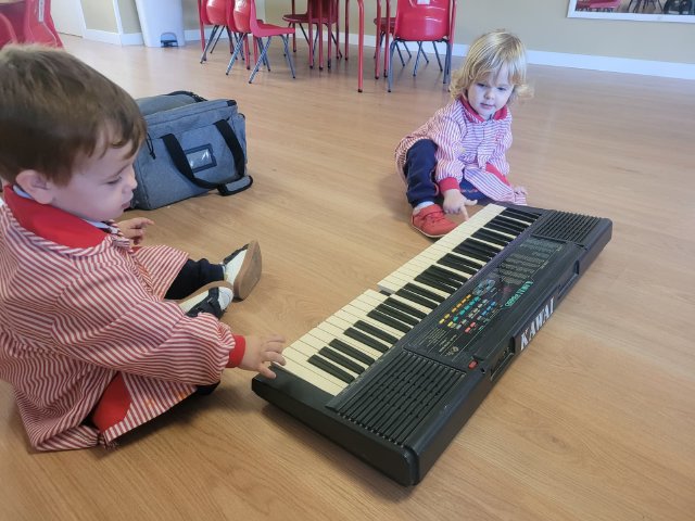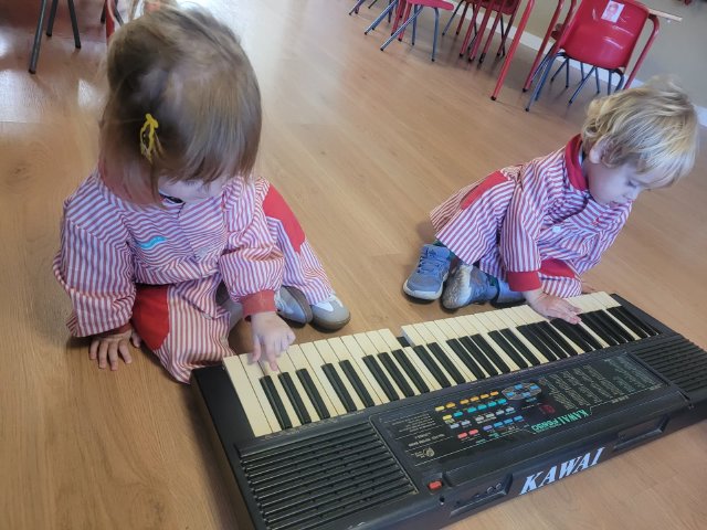 También hemos disfrutado de propuestas de exploración sensorial y rítmica, juegos musicales, movimiento libre y pequeños momentos para experimentar con el silencio, el volumen y la intensidad. La música se convirtió en un juego compartido, pero también en una herramienta para expresarse, comunicar y disfrutar juntos.