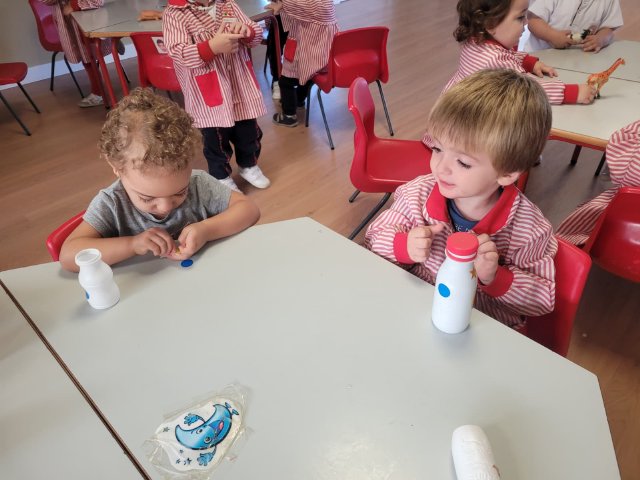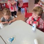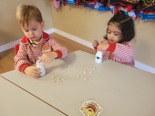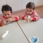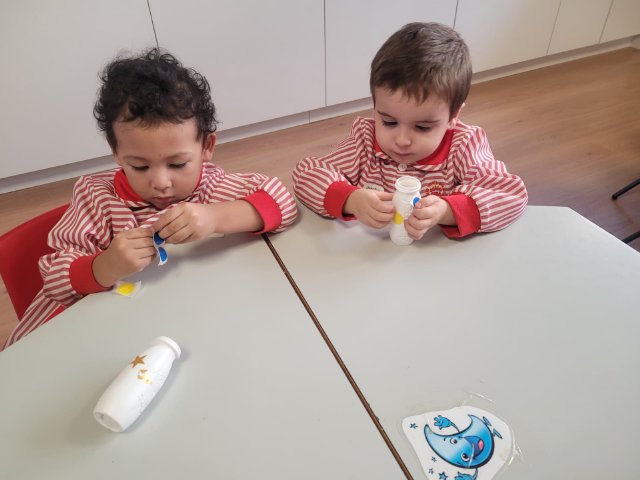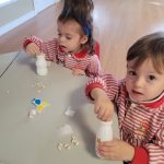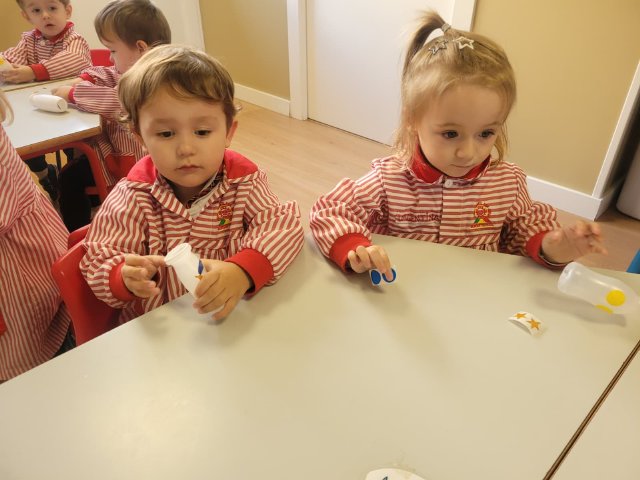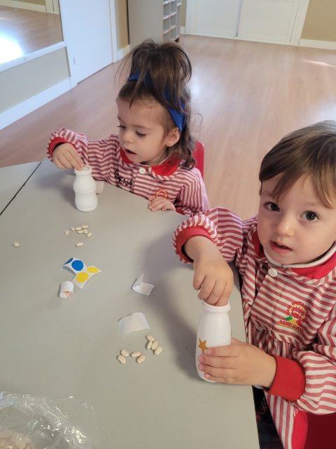 Uno de los momentos más especiales ha sido la creación de sus propias maracas con material reciclado. Cada peque introdujo los elementos que luego la harían sonar, probó cómo sonaban, decoró su instrumento y descubrió que, con sus propias manos, podía transformar objetos cotidianos en música. Fue precioso ver cómo comparaban sonidos, se sorprendían con los cambios y celebraban el resultado con mucho orgullo.