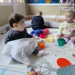 Una de las actividades que más disfrutan son los pequeños “paquetes de regalo” llenos de materiales suaves y sonoros. Les encanta manipularlos, estrujarlos y observar cómo brillan, convirtiendo un gesto tan cotidiano como abrir un regalo en una experiencia de descubrimiento.