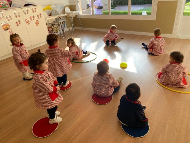En el aula de Verde 1, la psicomotricidad ocupa un lugar fundamental en el día a día, ya que a través del movimiento los niños y niñas descubren su cuerpo, ganan seguridad y exploran el espacio que les rodea. En esta etapa todo es nuevo: subir, bajar, encajar, empujar, rodar… y cada pequeño logro se convierte en un paso más hacia su autonomía.