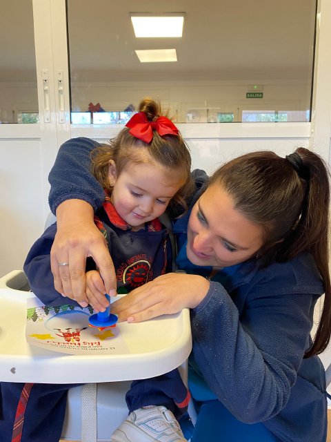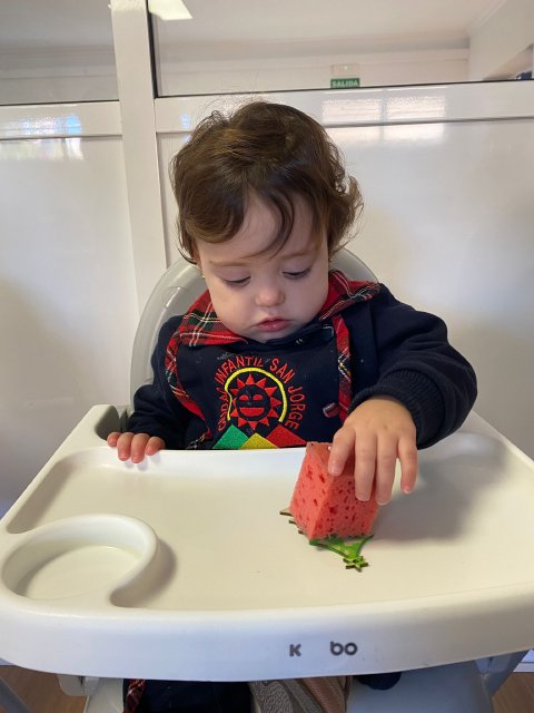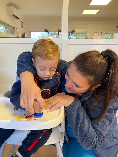 Los pequeños han ido dejando huellas, toquecitos y manchas de color que, poco a poco, se transformaban en un árbol lleno de vida. Cada uno lo ha hecho a su manera: algunos con muchos puntos, otros mezclando colores, otros extendiendo la pintura… y todos disfrutando del momento. Lo importante no era que quedara “perfecto”, sino que pudieran participar, decidir y ver cómo su creación iba tomando forma.