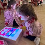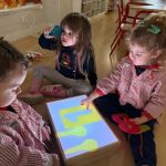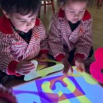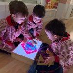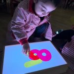 Esta semana han disfrutado de actividades con la mesa de luz, explorando números y colores de manera lúdica y sensorial. La luz resalta las formas y los colores, ayudando a los niños y niñas a identificar y relacionar números, mientras ejercitan la observación y la concentración.