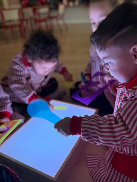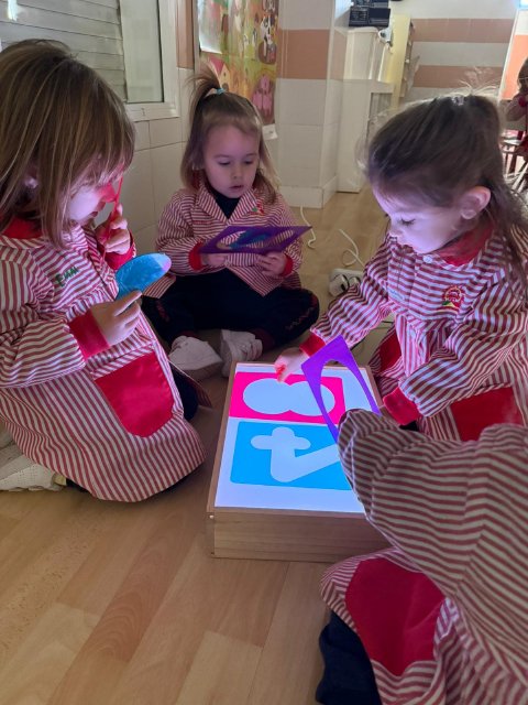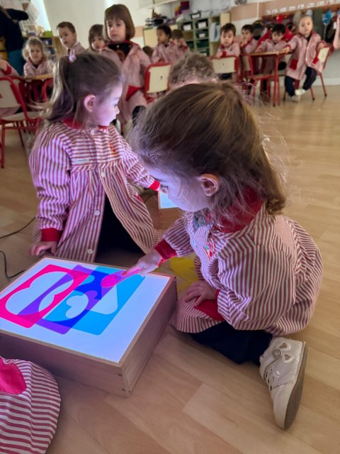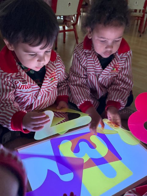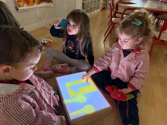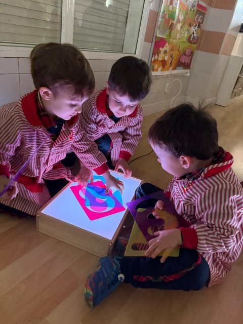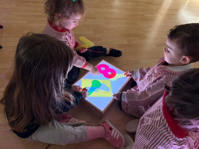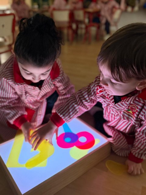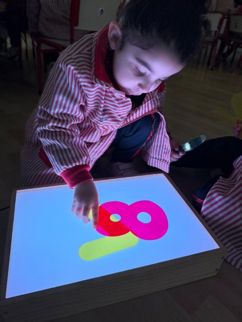Esta semana han disfrutado de actividades con la mesa de luz, explorando números y colores de manera lúdica y sensorial. La luz resalta las formas y los colores, ayudando a los niños y niñas a identificar y relacionar números, mientras ejercitan la observación y la concentración.
