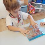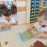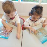 Por un lado, los peques exploraron unas divertidas bolsas sensoriales rellenas de gelatina de colores. Con sus manitas descubrieron texturas, jugaron a desplazar la gelatina y experimentaron nuevas sensaciones que estimulan la motricidad y la curiosidad.