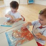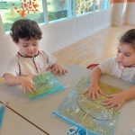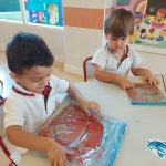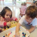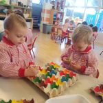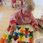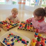 También disfrutaron de una propuesta de trasvases con pompones en hueveras, donde pudieron practicar la coordinación óculo-manual, la concentración y la motricidad fina, mientras jugaban y experimentaban con distintos materiales.