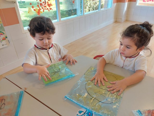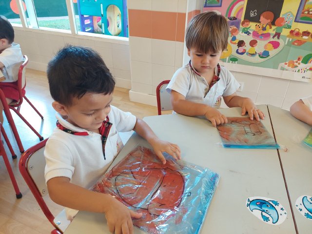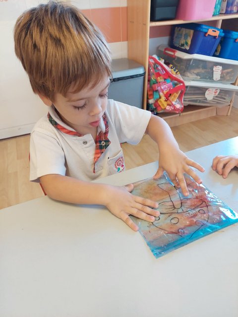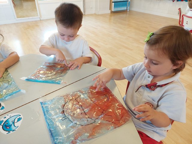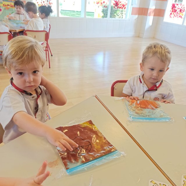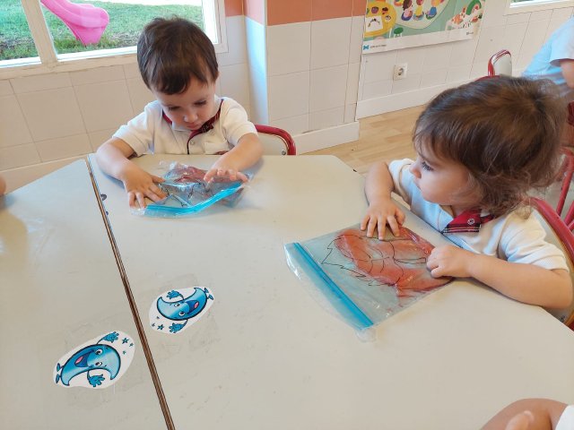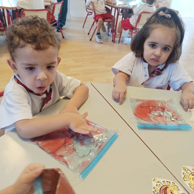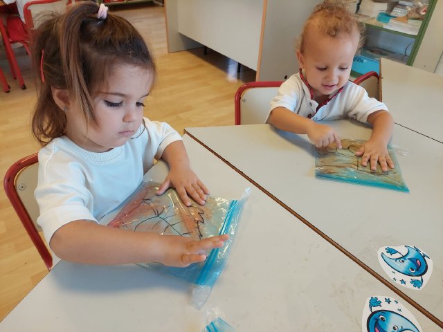 Por un lado, los peques exploraron unas divertidas bolsas sensoriales rellenas de gelatina de colores. Con sus manitas descubrieron texturas, jugaron a desplazar la gelatina y experimentaron nuevas sensaciones que estimulan la motricidad y la curiosidad.