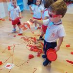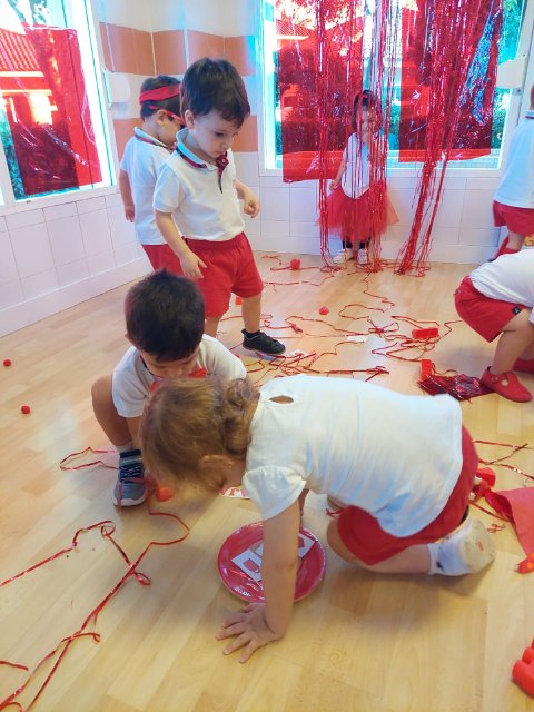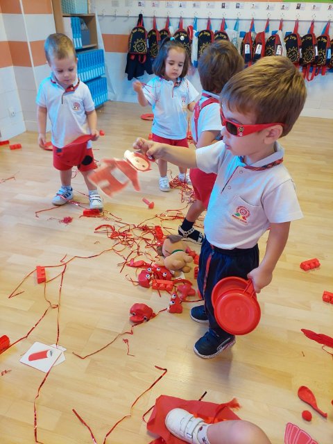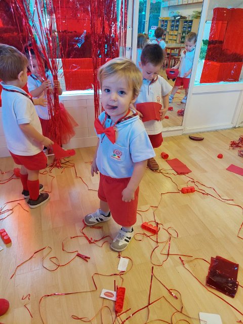 Los niños y niñas trajeron de casa objetos rojos para compartir con sus compañeros, y con el material del aula realizamos distintas actividades de exploración, clasificación y juego.