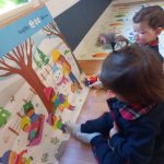 Además, realizamos un mural de invierno elaborado de forma participativa, donde los pequeños experimentan con diferentes materiales, texturas y colores, desarrollando su creatividad y motricidad fina mientras observan cómo cambia su entorno.