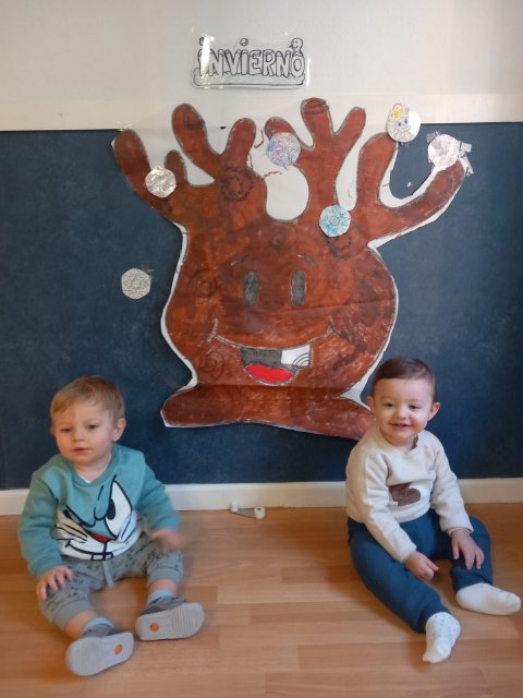 Además, realizamos un mural de invierno elaborado de forma participativa, donde los pequeños experimentan con diferentes materiales, texturas y colores, desarrollando su creatividad y motricidad fina mientras observan cómo cambia su entorno.