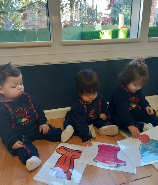 También aprendemos sobre la ropa de abrigo, identificando prendas como abrigos, gorros, bufandas o guantes, fomentando hábitos de autonomía y ayudándoles a comprender la importancia de cuidarse del frío.