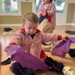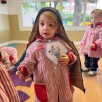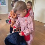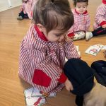 También aprendemos sobre la ropa de abrigo, identificando prendas como abrigos, gorros, bufandas o guantes, fomentando hábitos de autonomía y ayudándoles a comprender la importancia de cuidarse del frío.