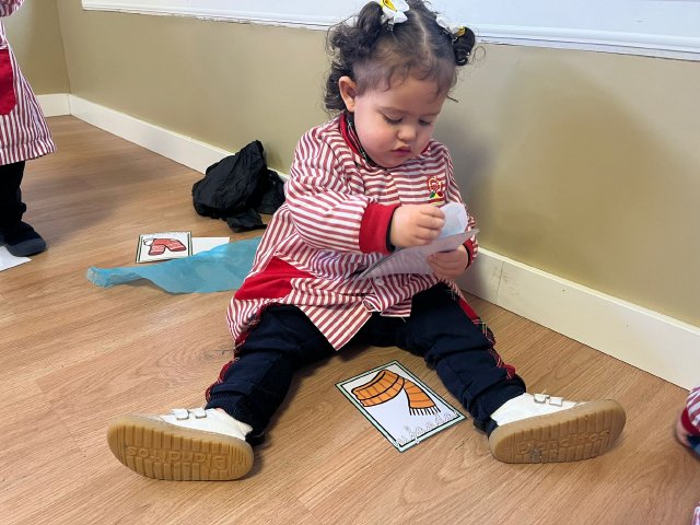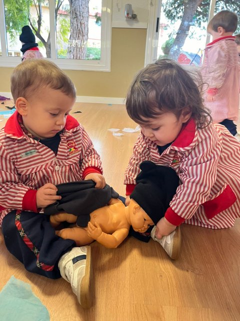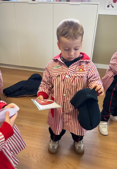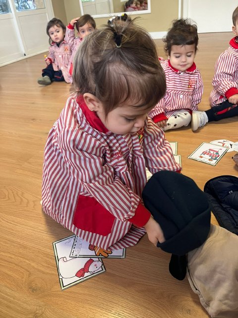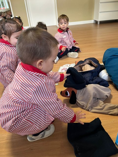 También aprendemos sobre la ropa de abrigo, identificando prendas como abrigos, gorros, bufandas o guantes, fomentando hábitos de autonomía y ayudándoles a comprender la importancia de cuidarse del frío.