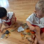 En estos días, los niños y niñas han participado en actividades sensoriales y creativas para dar la bienvenida al otoño. Hemos explorado hojas secas, piñas, ramas y frutos de temporada, descubriendo juntos sus formas, sus colores y sus texturas. A través del juego libre, han podido manipular, observar y experimentar con elementos naturales, despertando su curiosidad y estimulando todos sus sentidos.