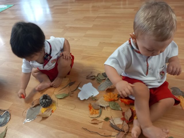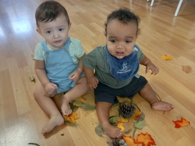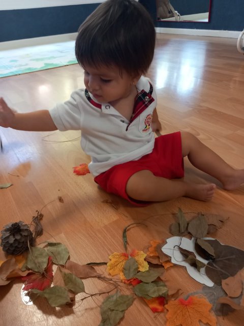En estos días, los niños y niñas han participado en actividades sensoriales y creativas para dar la bienvenida al otoño. Hemos explorado hojas secas, piñas, ramas y frutos de temporada, descubriendo juntos sus formas, sus colores y sus texturas. A través del juego libre, han podido manipular, observar y experimentar con elementos naturales, despertando su curiosidad y estimulando todos sus sentidos.