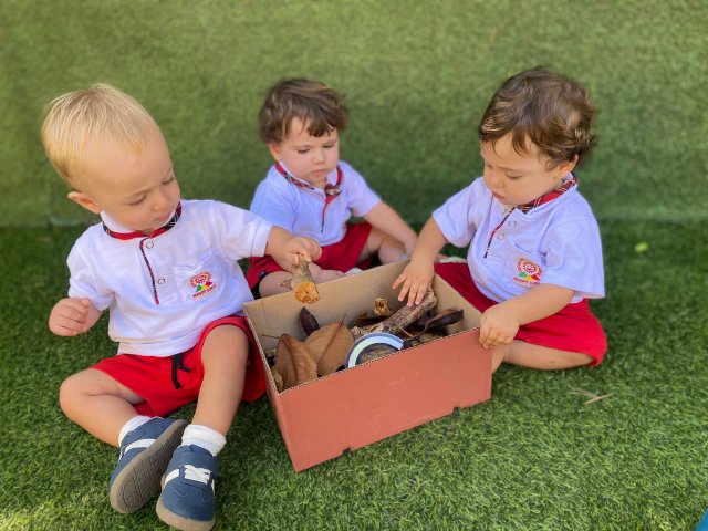 En estos días, los niños y niñas han participado en actividades sensoriales y creativas para dar la bienvenida al otoño. Hemos explorado hojas secas, piñas, ramas y frutos de temporada, descubriendo juntos sus formas, sus colores y sus texturas. A través del juego libre, han podido manipular, observar y experimentar con elementos naturales, despertando su curiosidad y estimulando todos sus sentidos.