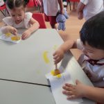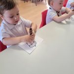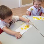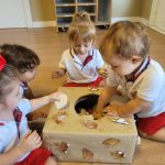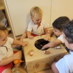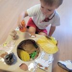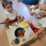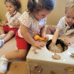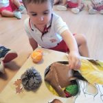 En estos días, los niños y niñas han participado en actividades sensoriales y creativas para dar la bienvenida al otoño. Hemos explorado hojas secas, piñas, ramas y frutos de temporada, descubriendo juntos sus formas, sus colores y sus texturas. A través del juego libre, han podido manipular, observar y experimentar con elementos naturales, despertando su curiosidad y estimulando todos sus sentidos.