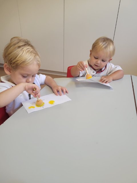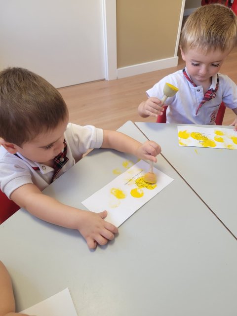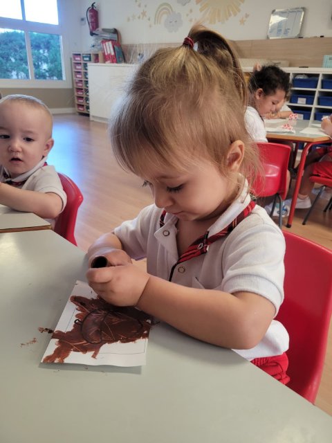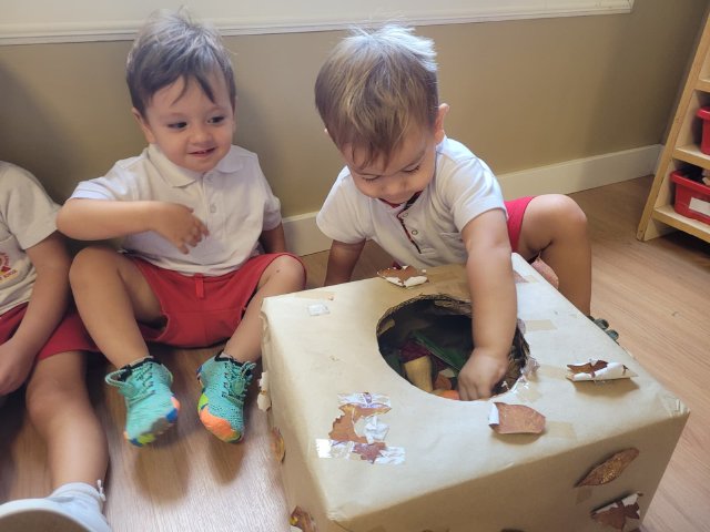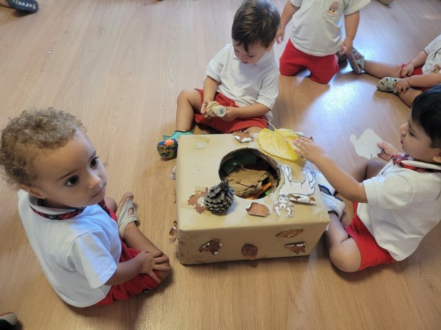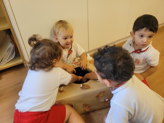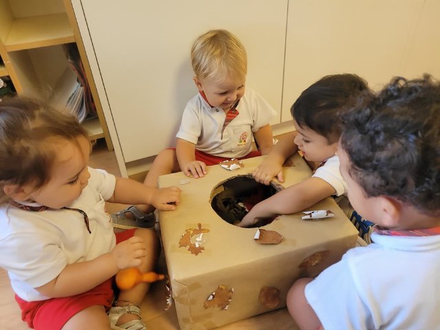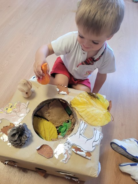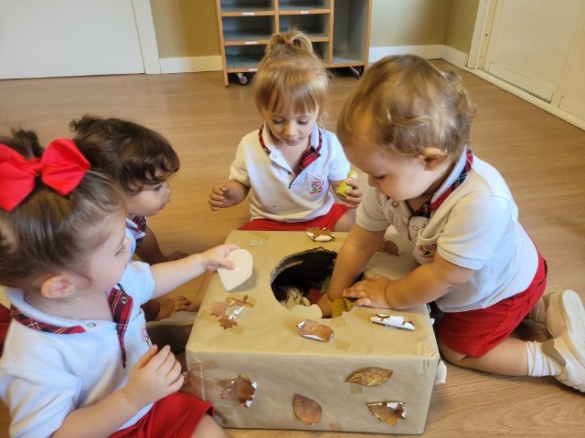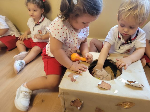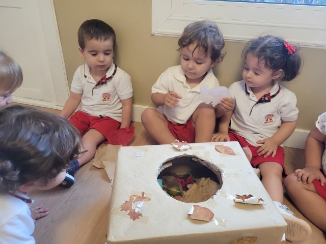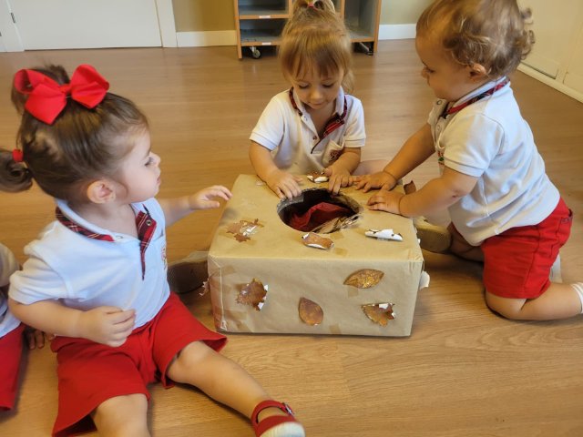 En estos días, los niños y niñas han participado en actividades sensoriales y creativas para dar la bienvenida al otoño. Hemos explorado hojas secas, piñas, ramas y frutos de temporada, descubriendo juntos sus formas, sus colores y sus texturas. A través del juego libre, han podido manipular, observar y experimentar con elementos naturales, despertando su curiosidad y estimulando todos sus sentidos.