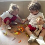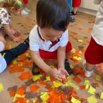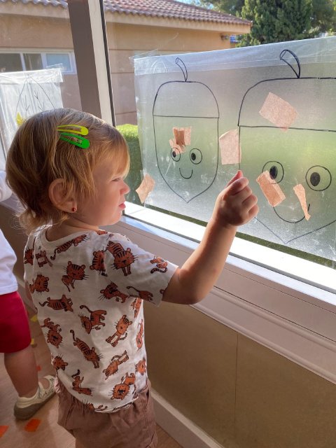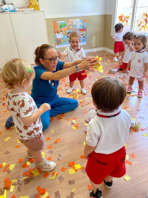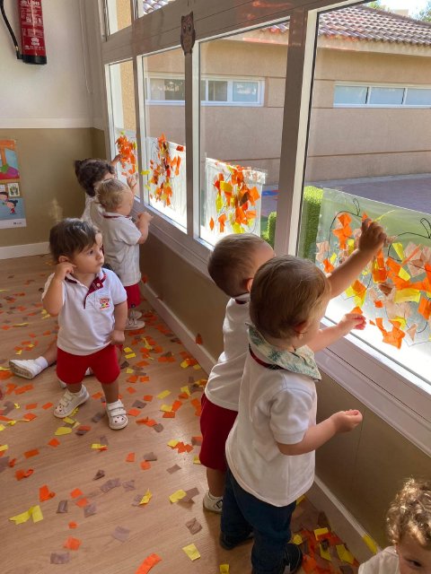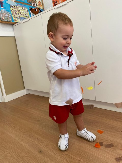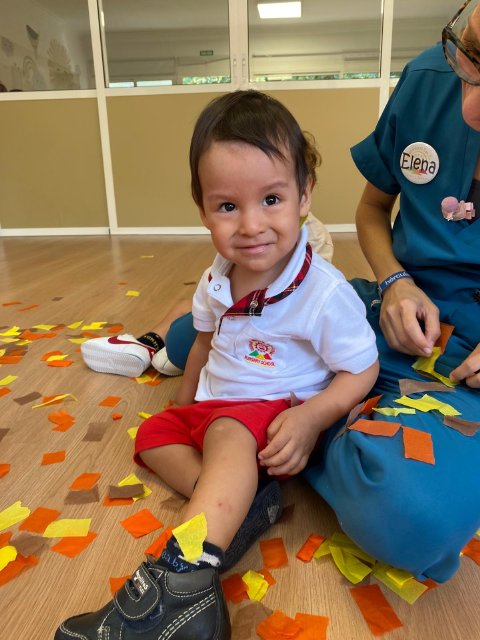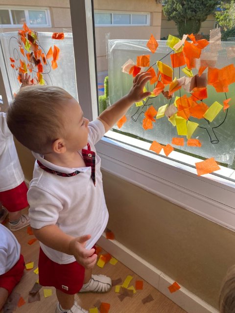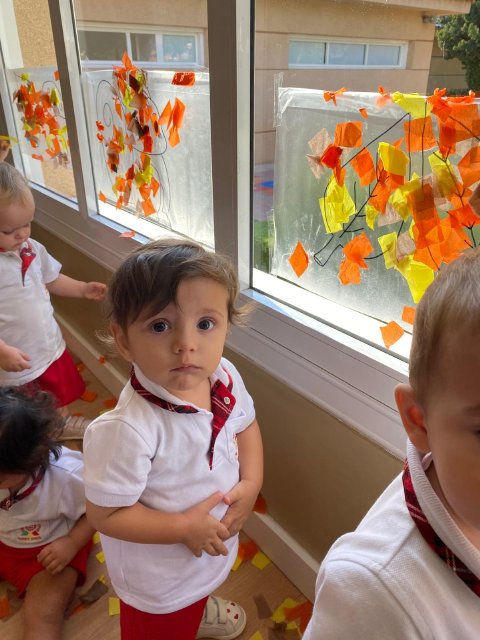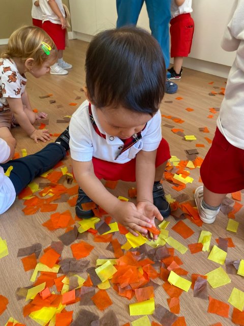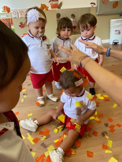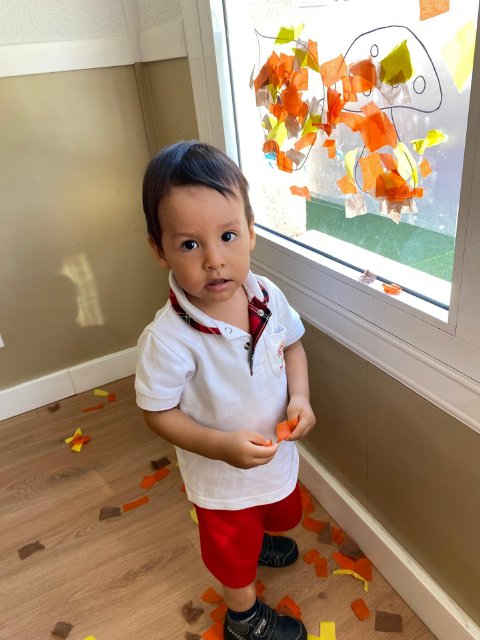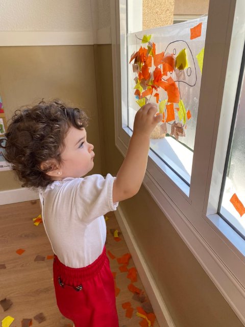 Nuestros peques de Verde 1 siguen disfrutando de la magia del otoño a través de diferentes propuestas sensoriales y creativas. Han explorado hojas secas con sus manos, han observado sus colores y texturas, y han participado en la creación de murales otoñales llenos de alegría y color.