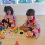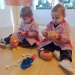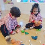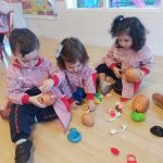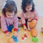 Después continuamos el aprendizaje de forma más lúdica con el clásico Mister Potato, un juego que les encanta. Con sus piezas intercambiables, los niños pudieron experimentar creando caras de todo tipo: algunas muy coherentes… ¡y otras llenas de imaginación! Esta dinámica favorece el pensamiento creativo, la coordinación y el lenguaje, ya que comentan entre ellos lo que van construyendo.