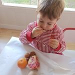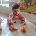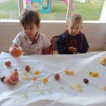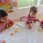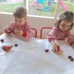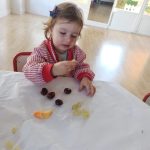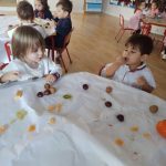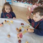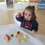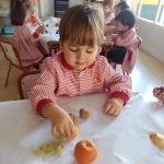 Esta semana hemos realizado una deliciosa actividad de descubrimiento sensorial con frutas típicas del otoño: uvas, caquis, granadas, manzanas y mandarinas.