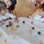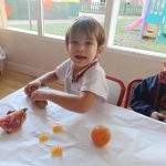 Los niños y niñas exploraron sus colores, texturas, olores y sabores, observando cómo cada fruta es diferente y aprendiendo nuevas palabras y sensaciones.