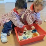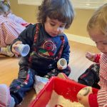 Además, realizaron trasvases, llenando y vaciando recipientes, observando cantidades y texturas. Este tipo de propuestas favorecen la motricidad fina, la concentración y la experimentación, siempre desde un ambiente tranquilo y adaptado a su edad, donde el aprendizaje surge a través del juego.
