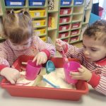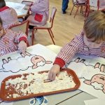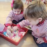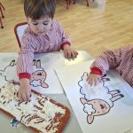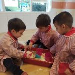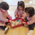 En el aula de Rojo 3 hemos realizado una actividad sensorial con harina, que permitió a los niños y niñas explorar a través del tacto y el juego libre. En recipientes llenos de harina, los peques buscaron y descubrieron pequeñas figuras, desarrollando la curiosidad, la atención y la coordinación.