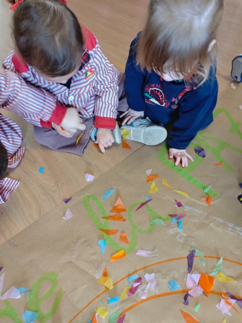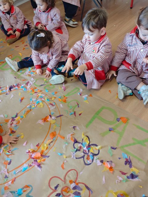 Mediante cuentos, conversaciones sencillas, murales colectivos y pequeñas manualidades, los peques han aprendido que la paz se construye con gestos cotidianos: compartir, respetar, cuidar y convivir. Cada actividad ha sido una oportunidad para fomentar la empatía, el compañerismo y el afecto dentro del aula.