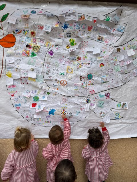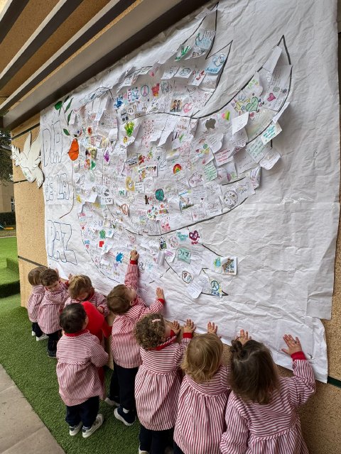Mediante cuentos, conversaciones sencillas, murales colectivos y pequeñas manualidades, los peques han aprendido que la paz se construye con gestos cotidianos: compartir, respetar, cuidar y convivir. Cada actividad ha sido una oportunidad para fomentar la empatía, el compañerismo y el afecto dentro del aula.