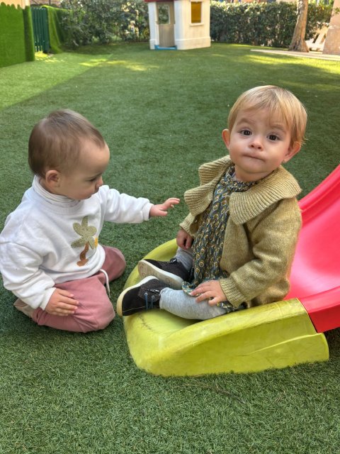La clase de Azul 1 ha aprovechado estos suaves rayitos de sol de otoño para disfrutar del jardín. Salir al exterior es siempre un momento lleno de calma, curiosidad y descubrimientos para nuestros peques.