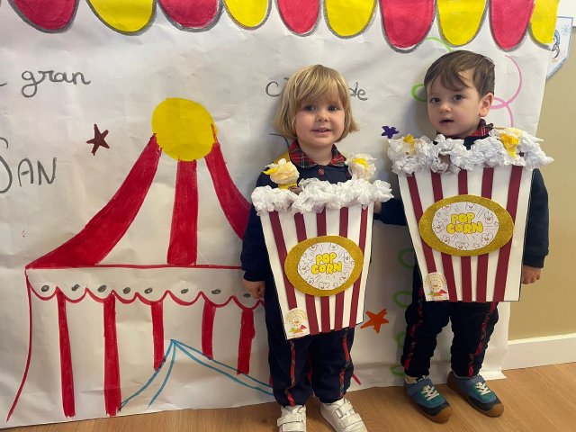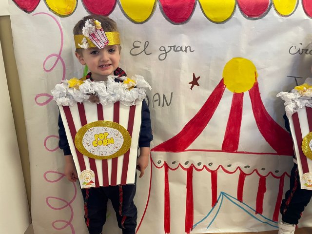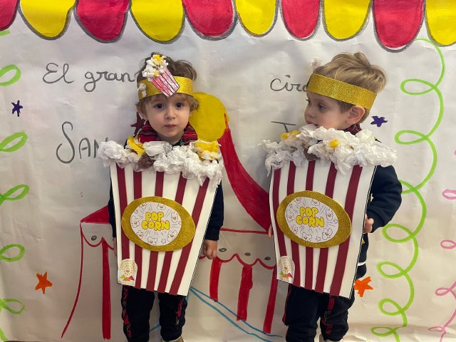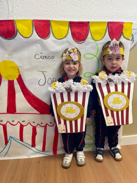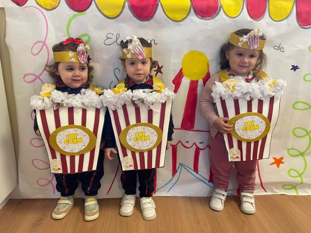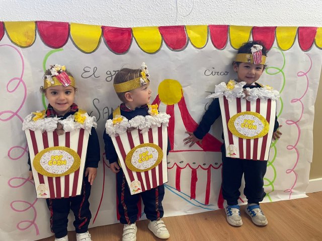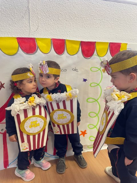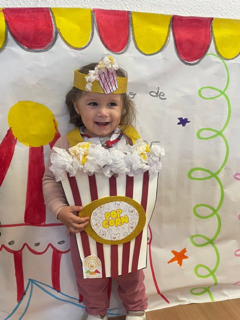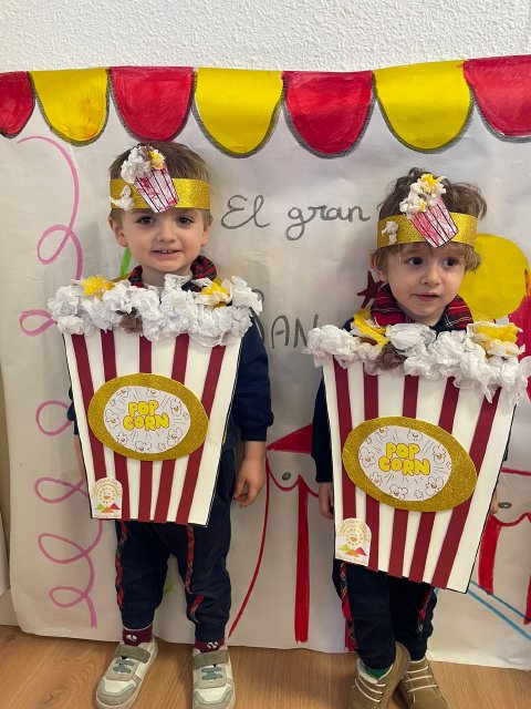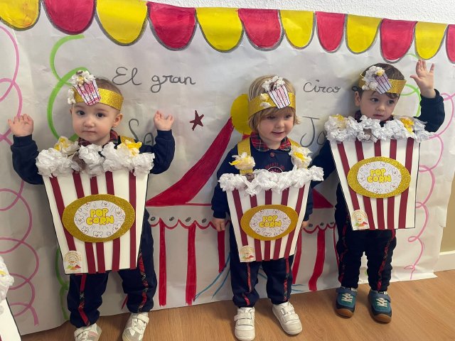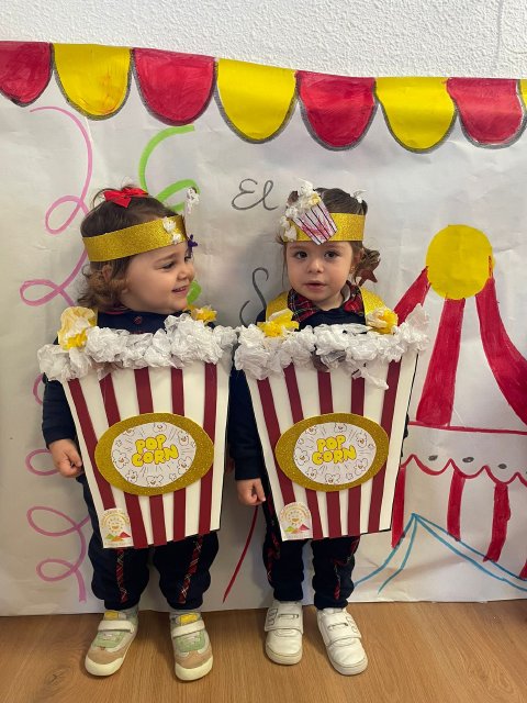Los niños y niñas de Rojo 2 han celebrado el Carnaval transformándose en simpáticos cubos de palomitas de maíz, uno de los elementos más divertidos y representativos del circo.