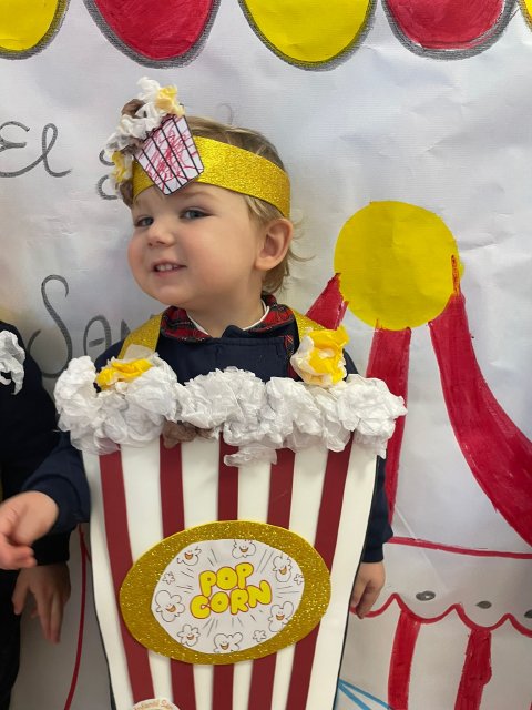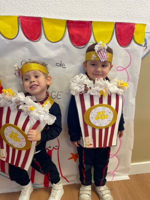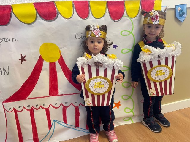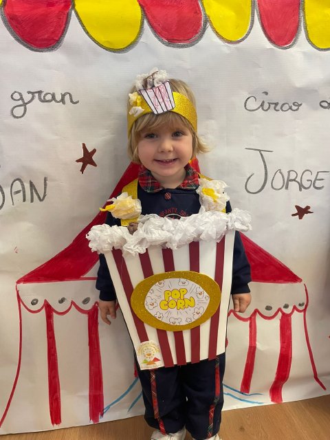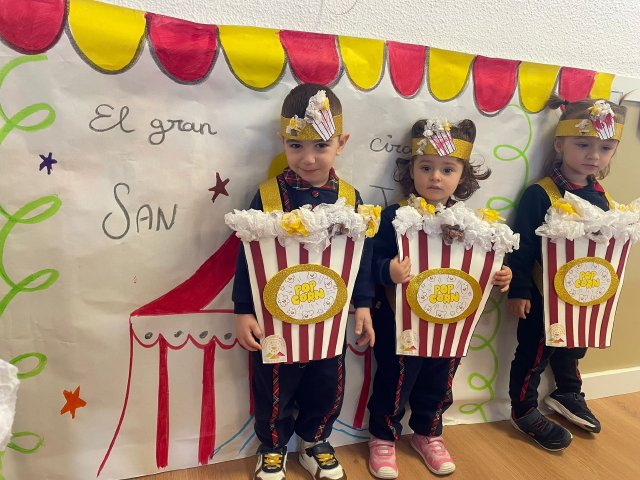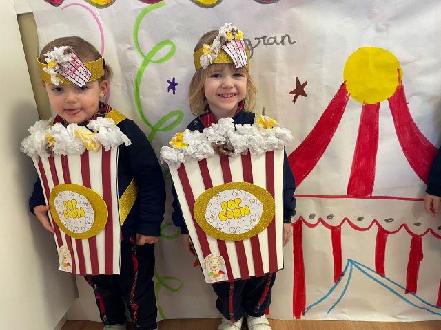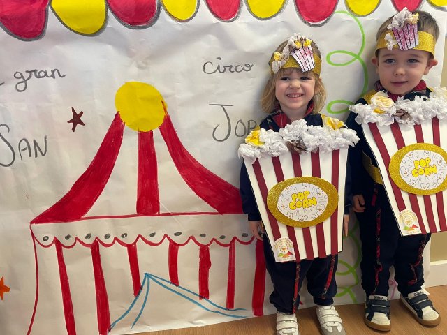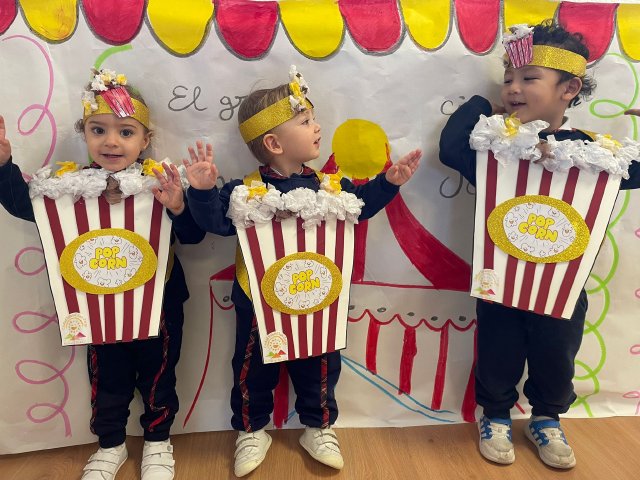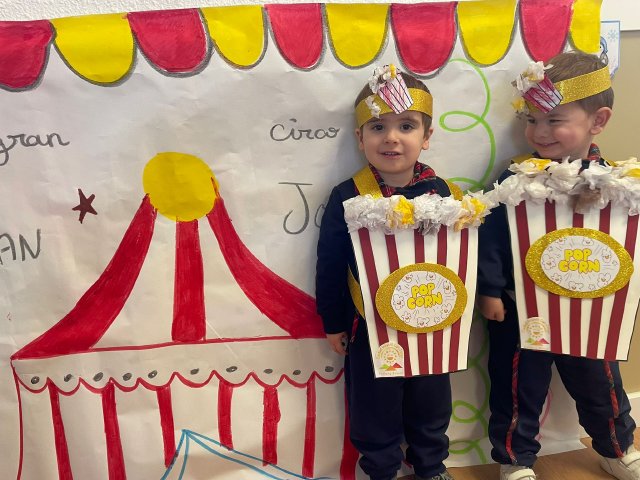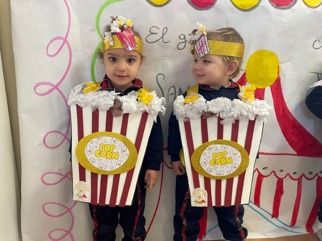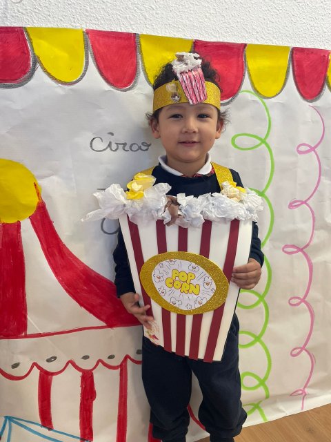 Los niños y niñas de Rojo 2 han celebrado el Carnaval transformándose en simpáticos cubos de palomitas de maíz, uno de los elementos más divertidos y representativos del circo.