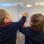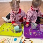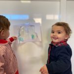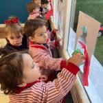 En Azul 3 hemos disfrutado de una actividad muy sensorial y creativa que despertó la curiosidad de los peques. Comenzamos trabajando el rasgado de papel de seda, una propuesta ideal para fortalecer la motricidad fina y la coordinación ojo-mano. Los niños y niñas rasgaron libremente el papel y después lo pegaron sobre figuras previamente recortadas en papel adhesivo, explorando texturas, colores y formas de manera autónoma y divertida.