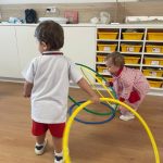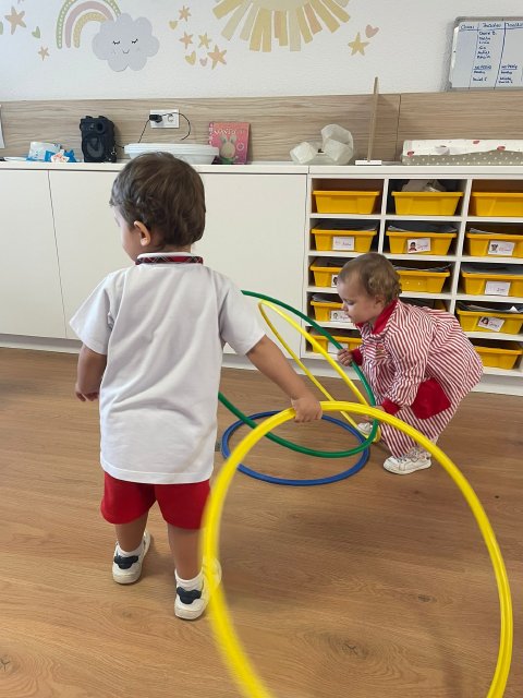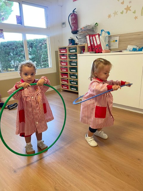 Durante la sesión de psicomotricidad con aros, pusieron en marcha su cuerpo: saltaron, rodaron, pasaron por dentro y fuera… ¡un espacio ideal para desarrollar la coordinación, el equilibrio y la autonomía a través del juego!