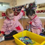 Y con la arena de colores, pudieron manipular, trasvasar y crear, disfrutando de las sensaciones táctiles y del placer de experimentar con diferentes texturas y tonalidades.