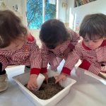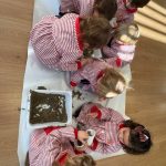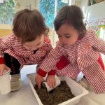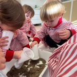 Comenzamos con actividades con arena, realizando trasvases con palas y vasos, una propuesta que favorece la coordinación, la concentración y la motricidad fina a través de la manipulación libre.