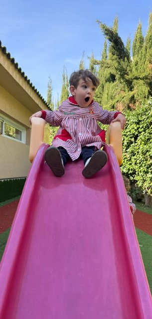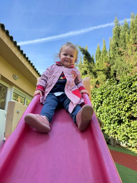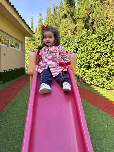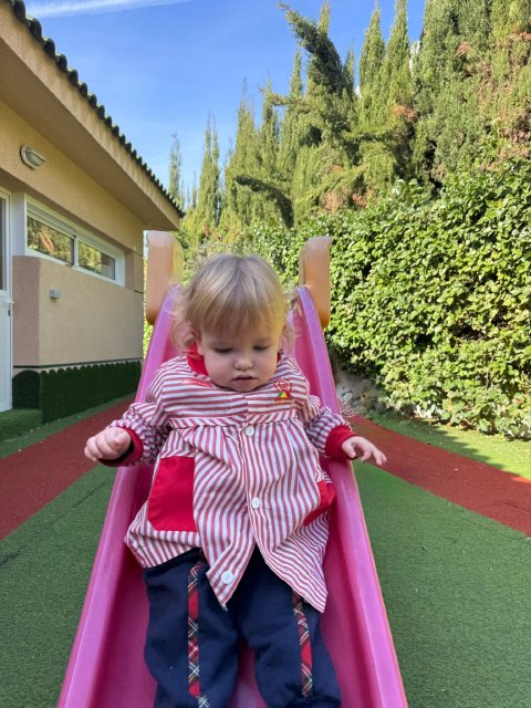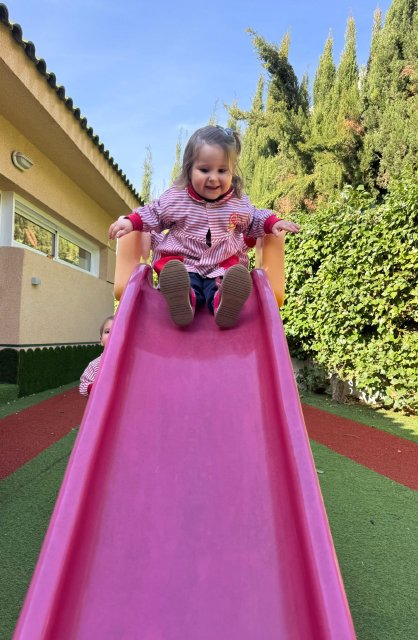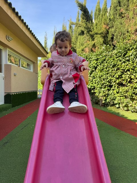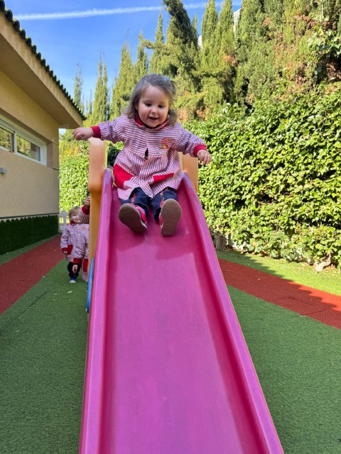 Después, hemos salido al jardín para disfrutar del tobogán, un espacio perfecto para desarrollar el equilibrio, la autonomía y el control corporal mientras juegan y se divierten al aire libre.