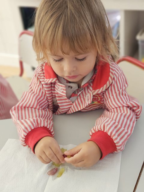Nuestros peques de Rojo 4 han disfrutado de una divertida y educativa caja sensorial llena de elementos otoñales: hojas secas, piñas, semillas y otros tesoros de la naturaleza. Manipular, clasificar y descubrir cada objeto les ha permitido estimular sus sentidos, desarrollar la motricidad fina y despertar la curiosidad por el mundo que les rodea.