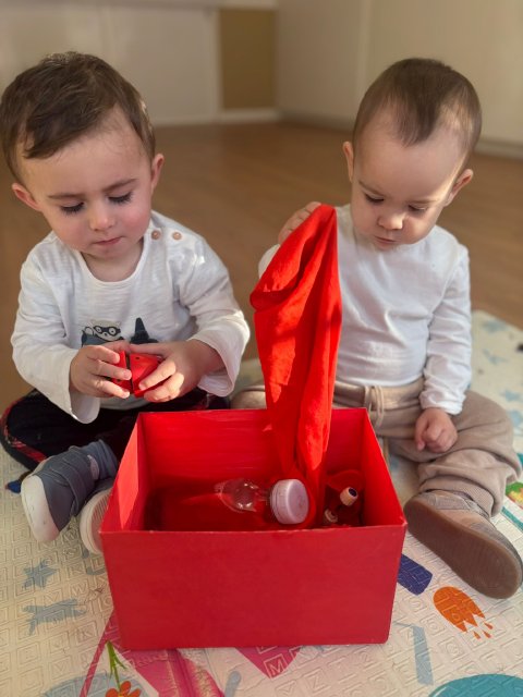 Los niños y niñas trajeron de casa objetos rojos para compartir con sus compañeros, y con el material del aula realizamos distintas actividades de exploración, clasificación y juego.