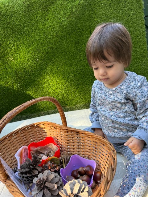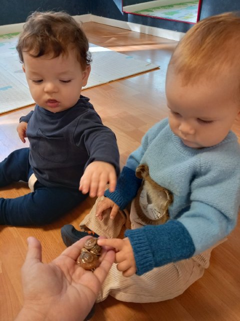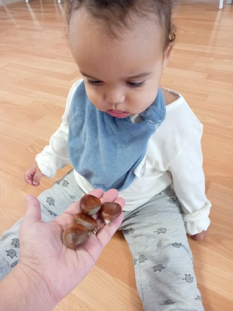 Hemos cantado canciones, escuchado historias sobre el bosque y, por supuesto, hemos podido oler y tocar las castañas. Fue una experiencia llena de curiosidad, risas y aprendizaje sensorial.