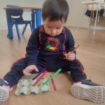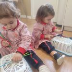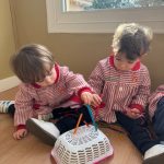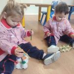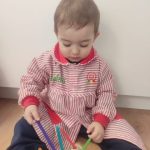 En Verde 1 hemos realizado una actividad manipulativa de ensartar palos de madera pintados de colores en cajas con ranuras, una propuesta sencilla que favorece el aprendizaje a través de la acción y la experimentación.