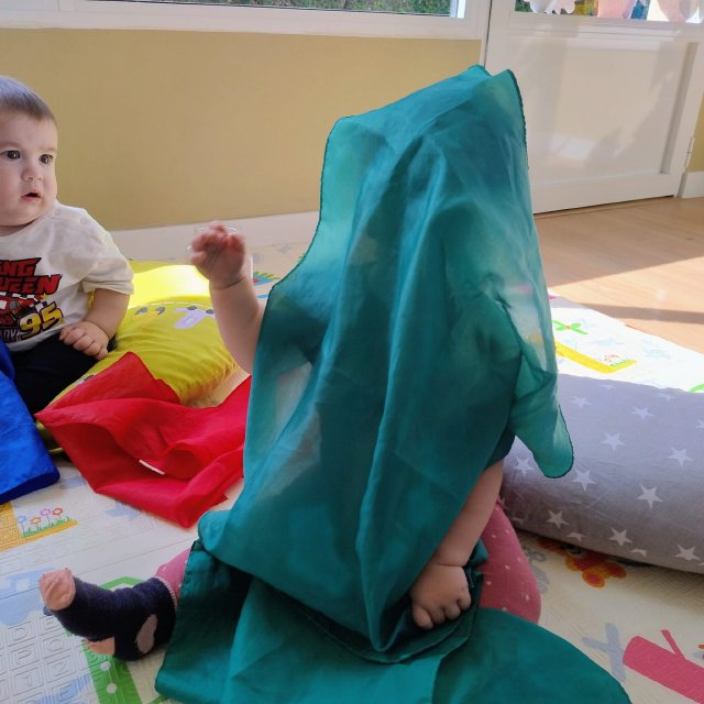 Con la ayuda de suaves pañuelos de colores, los niños y niñas han vivido momentos llenos de sorpresa, risas y descubrimientos.