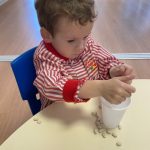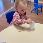 Esta sencilla actividad les permitió trabajar la coordinación ojo-mano, la precisión y la paciencia, además de fomentar la creatividad y la exploración sensorial con materiales cotidianos.