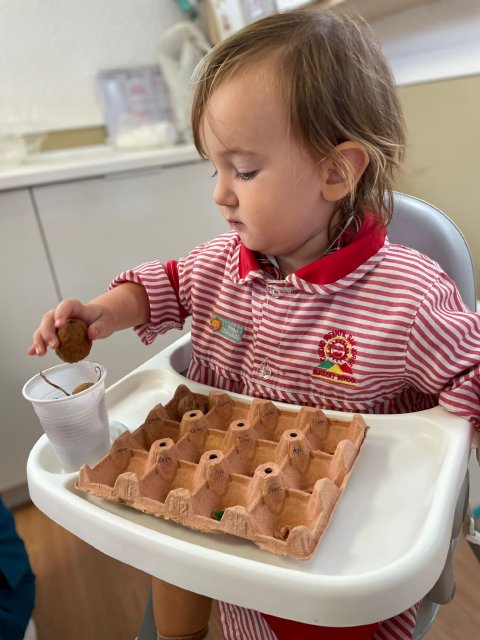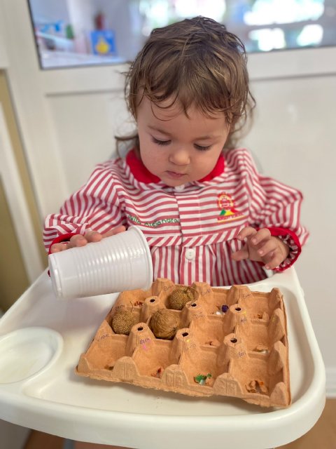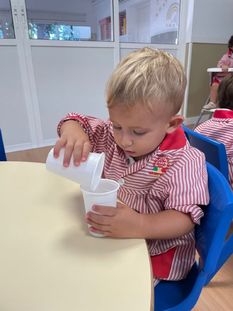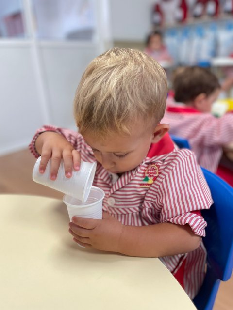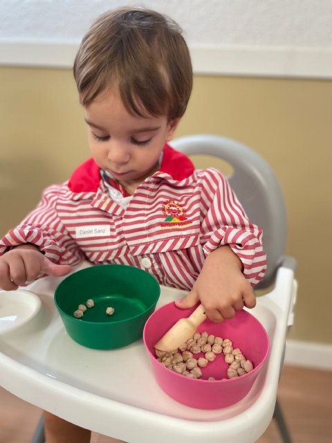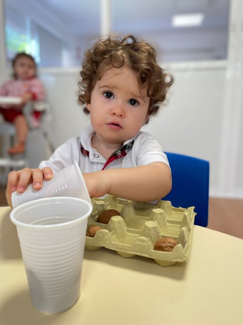 Nuestros peques de Verde 2 han disfrutado de una divertida propuesta de trasvases, manipulando distintos materiales de la vida cotidiana. Con pompones en hueveras y tapones de corcho entre vasos de plástico, han practicado la coordinación óculo-manual, la concentración y la motricidad fina, mientras descubrían nuevas formas de jugar y experimentar.