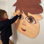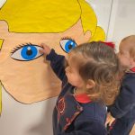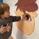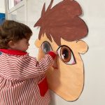 Comenzamos con la actividad del mural de caras, un espacio donde los niños podían colocar ojos, narices y bocas en distintos rostros. Manipulando las piezas, descubrieron las partes de la cara de una forma visual y muy divertida, mientras experimentaban con las formas y desarrollaban su coordinación.