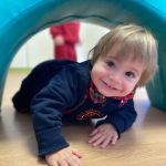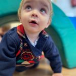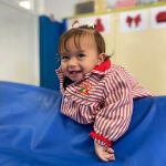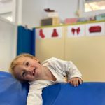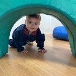 Después dimos paso a una propuesta de motricidad gruesa llena de aventura. Preparamos un circuito con material de gomaespuma: rulos, colchonetas, puentes, rampas y bloques blanditos que invitaban a trepar, gatear, subir, bajar y desplazarse libremente. Cada niño avanzó a su ritmo, disfrutando del movimiento seguro y explorando nuevas posibilidades de su cuerpo.
