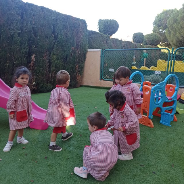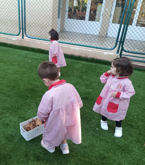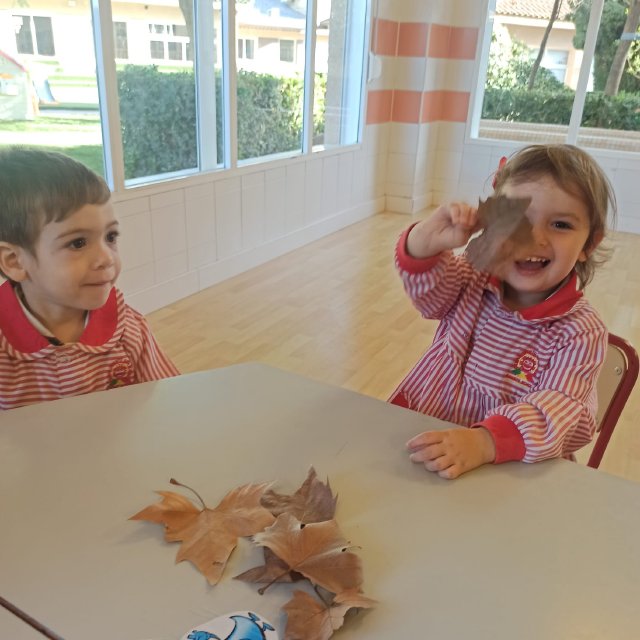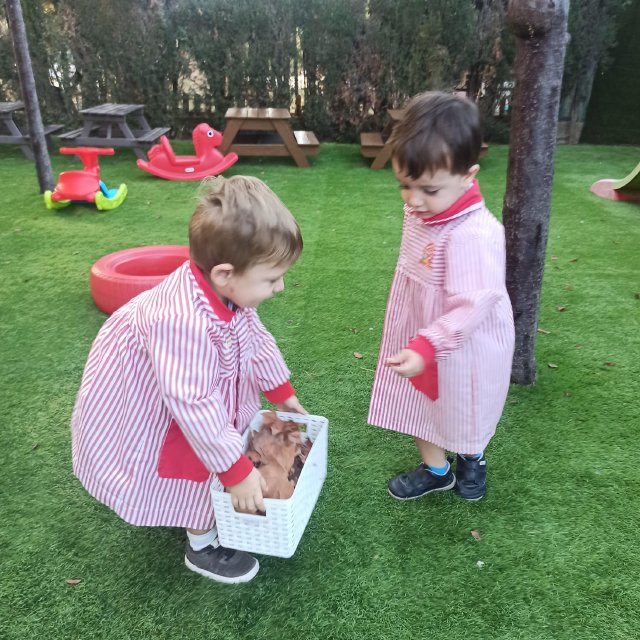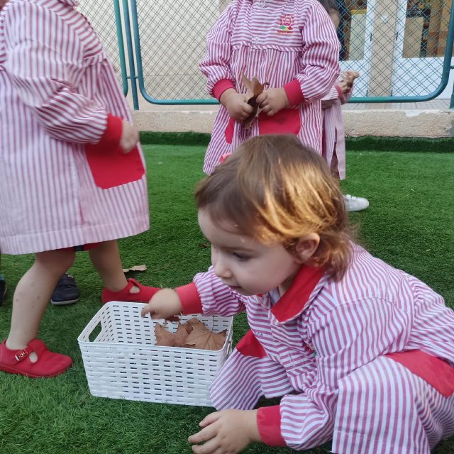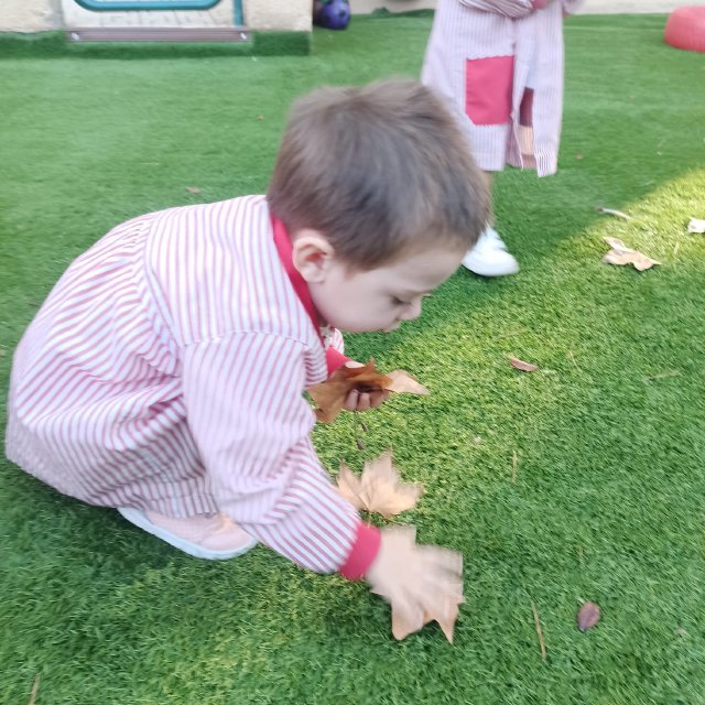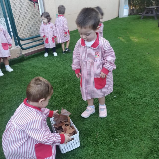 A través de la manipulación libre, los pequeños han observado los diferentes tonos del otoño, han escuchado el crujido de las hojas al pisarlas, han comparado tamaños y formas, y han creado sus propios juegos e historias.