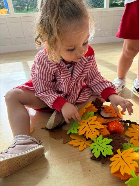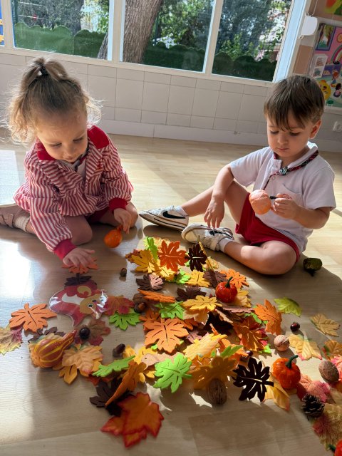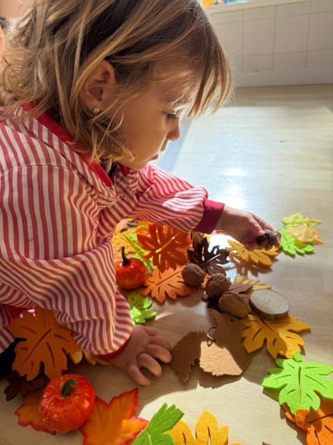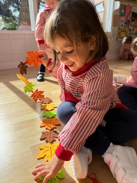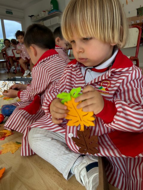 A través de la manipulación libre, los pequeños han observado los diferentes tonos del otoño, han escuchado el crujido de las hojas al pisarlas, han comparado tamaños y formas, y han creado sus propios juegos e historias.